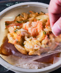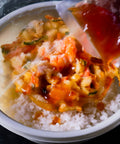 Savor the delicious balance of seafood and garden-fresh vegetables with our Mixed Shrimp & Vegetable Rice Bowl. Featuring a colorful medley of shrimp, carrot, onion, and kale tempura on a bed of fluffy rice, this bowl is drizzled with a flavorful tamari sauce that brings every bite together.